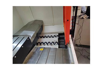 8)  在床身两侧内嵌螺旋排屑槽,标配链板式排屑器,采用前排屑结构,合理有效利用机床空间,操作方便。